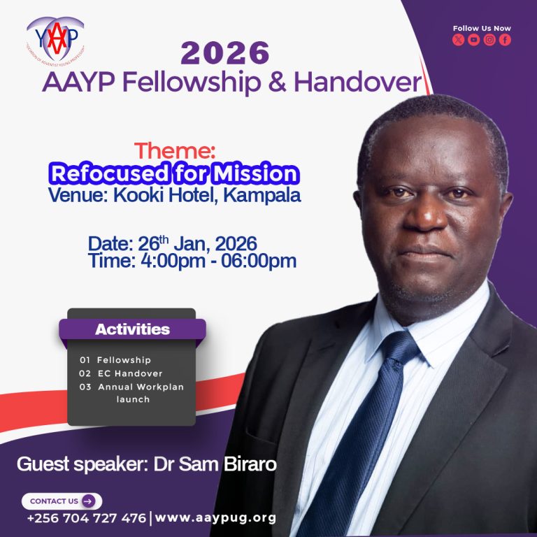 The Association of Adventist Young Professionals (AAYP), is a members based organization fully registered as an association, company limited by guarantee and run on the principles that govern the SDA church. The association was launched in 2009 by the then minister of Ethics and integrity (Mr. Nsaba Butuuro) to co-ordinate Adventist professionals to develop themselves, the church and the communities around them.